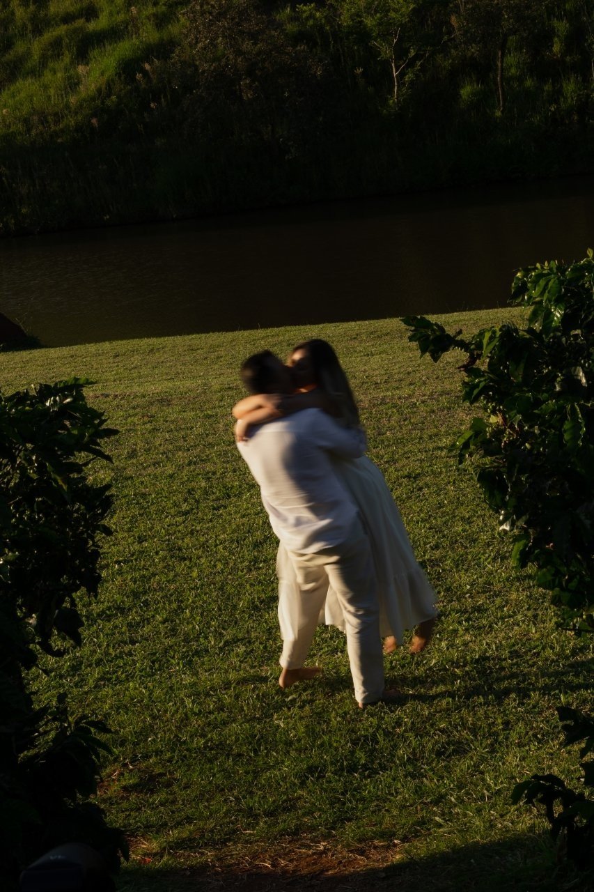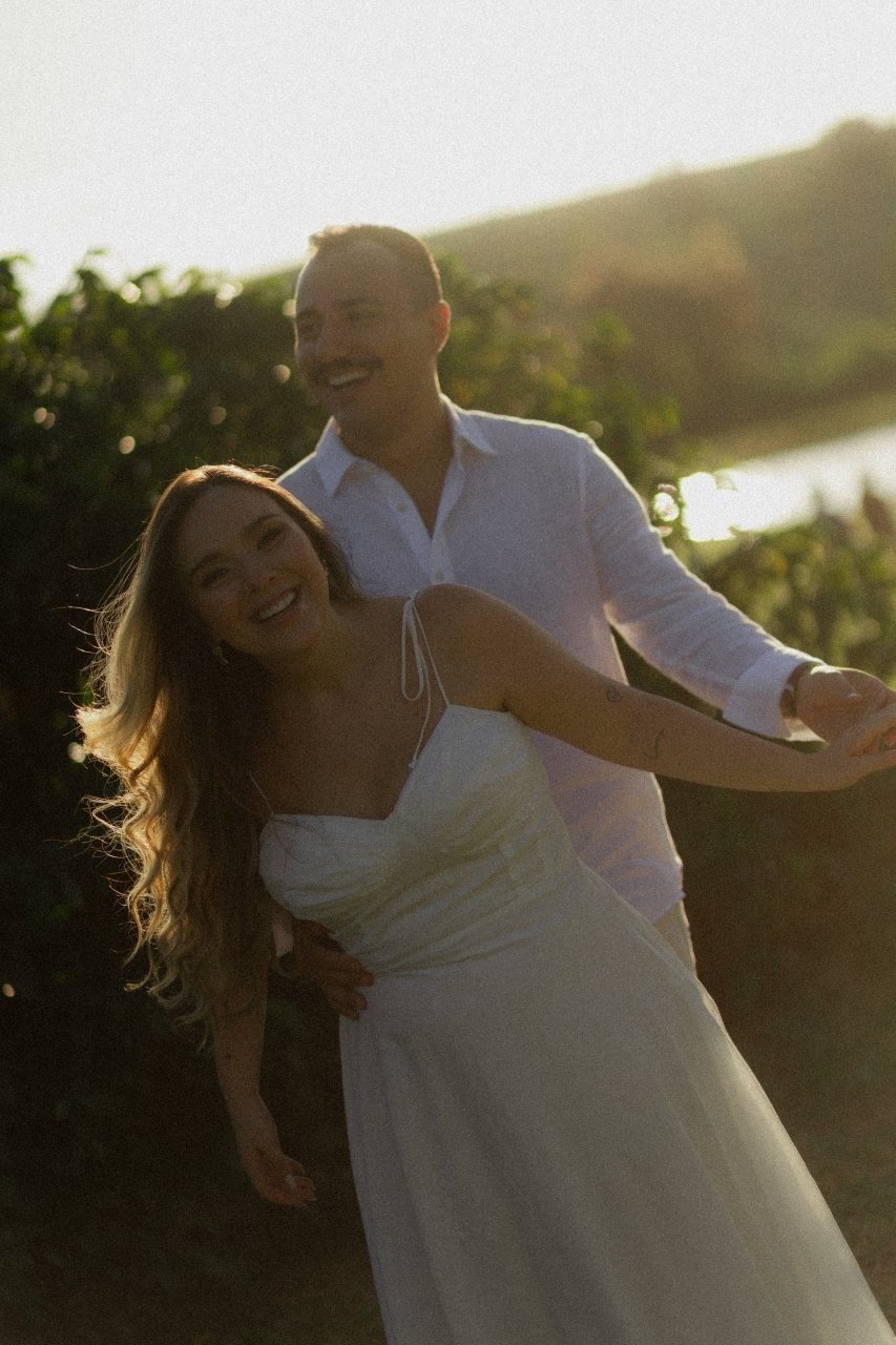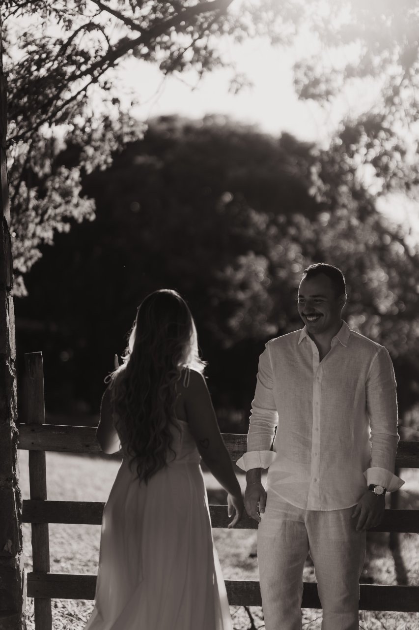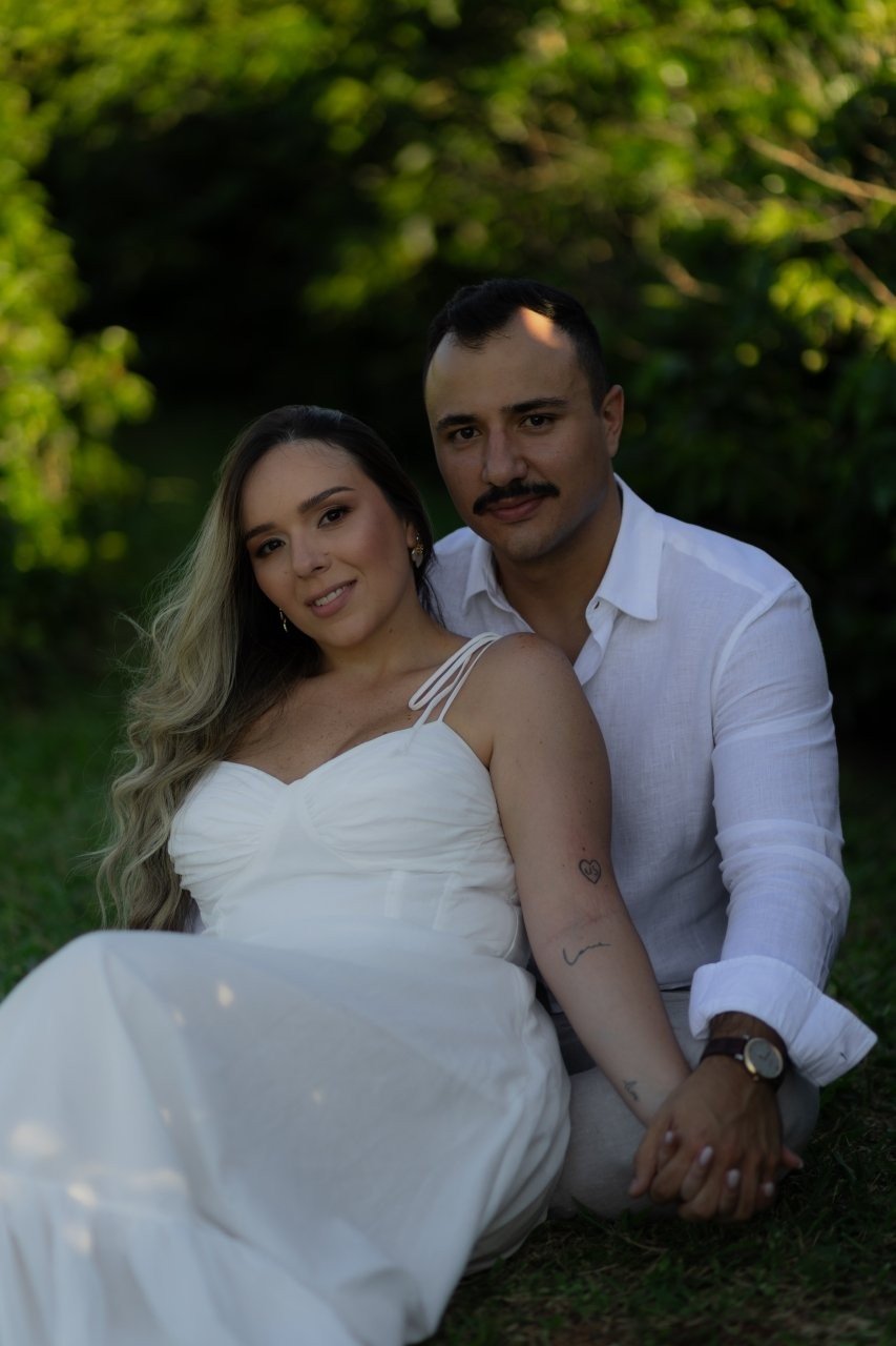 Desde então, não nos desgrudamos mais. Três meses depois, já estávamos morando juntos. E quando completávamos quase dois anos, veio o pedido: em São Miguel dos Milagres, no dia 12/06/2024. Ele estava visivelmente nervoso (mal conseguia disfarçar). No nosso chalé, em meio à natureza, abri a porta e me deparei com flores, fotos nossas e um cenário de tirar o fôlego. Quando virei para trás, lá estava ele, ajoelhado, com a voz trêmula e os olhos brilhando, me pedindo em casamento. Só conseguia rir — de alegria, de emoção, de amor. Dizer "sim" nunca pareceu tão natural.