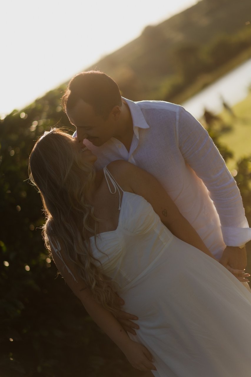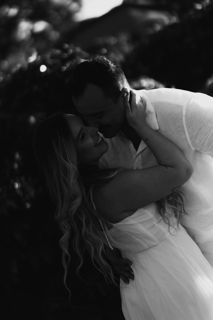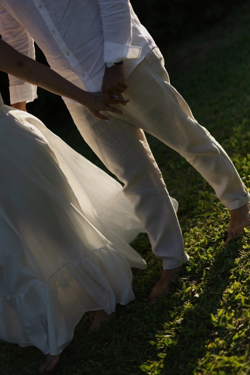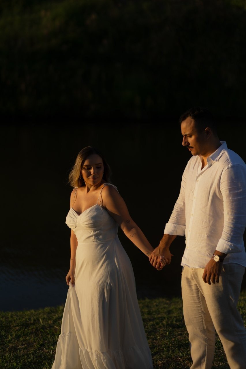Desde então, não nos desgrudamos mais. Três meses depois, já estávamos morando juntos. E quando completávamos quase dois anos, veio o pedido: em São Miguel dos Milagres, no dia 12/06/2024. Ele estava visivelmente nervoso (mal conseguia disfarçar). No nosso chalé, em meio à natureza, abri a porta e me deparei com flores, fotos nossas e um cenário de tirar o fôlego. Quando virei para trás, lá estava ele, ajoelhado, com a voz trêmula e os olhos brilhando, me pedindo em casamento. Só conseguia rir — de alegria, de emoção, de amor. Dizer "sim" nunca pareceu tão natural.